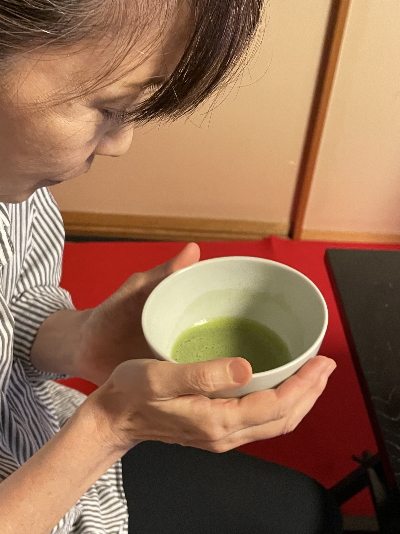 夕食前の茶室での茶の湯体験、翌朝の相撲体操の予約も取っていただけました。