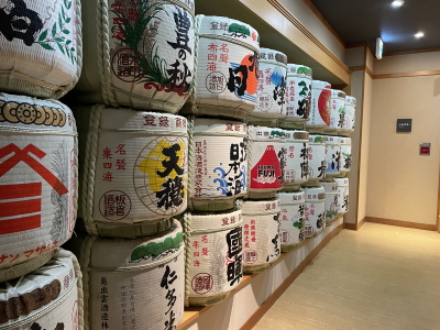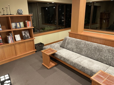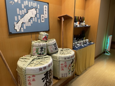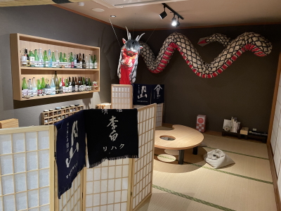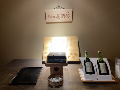 神楽が終わってすぐ、日本酒BARへ向かったが、ラストオーダーが21時15分までだったようで、誰もおらず店じまいしていた。日本酒3種セットどれにしようかと楽しみにしていたのでとても残念でした。夜の施設内を撮影。