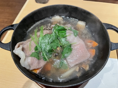 メインは和牛小鍋に土鍋ご飯と十六島のり。