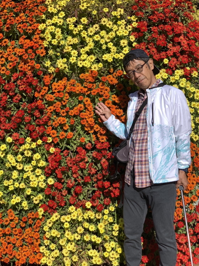 ロードトレインの乗り場近く。2メートルほどの高さまで花が飾り付けられている。