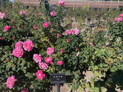 バラ回廊。この時期に咲くバラと春に咲くバラがあるようです。
