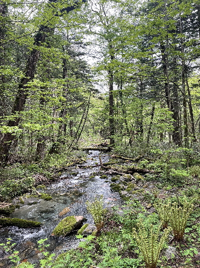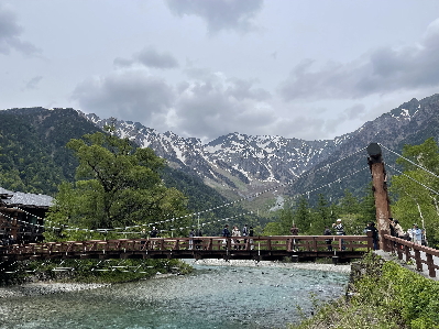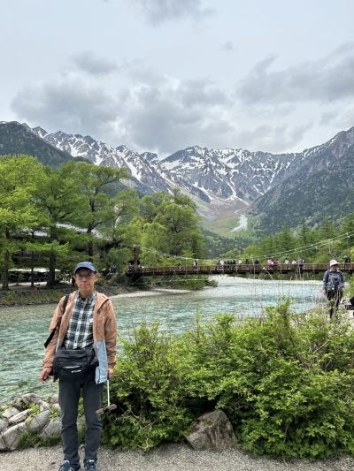 上高地を2時間散策。上高地は2004年7月以来21年ぶり、当時は小学生の子どもたちと平湯でキャンプして2日目にバスで訪ねた。大正池、田代橋、河童橋を散策した。