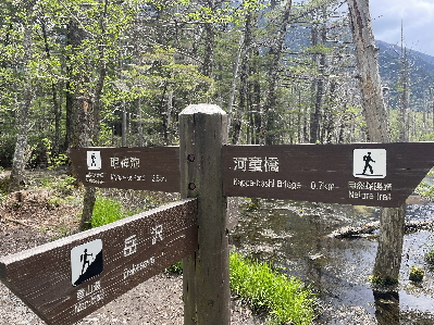 今回の夫婦旅は明神池へ向かう右岸を散策することに。さすがに2時間では明神池までは無理なので途中引き返すプラン。