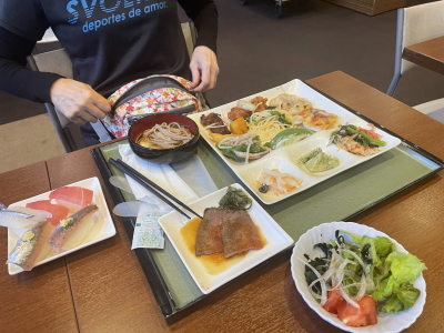 バイキング形式の夕食開始は17:30、中学生は17:45に夕食会場にくるらしいのでそれまでに料理を取り終えた方がよいと添乗員さんの情報。ホテルには17時頃着。荷物を置いて17:25分頃バイキング会場に到着するともう入場OKとなっていた。