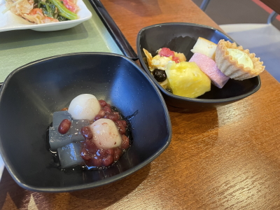 ひとしきり料理を撮り終え、2周目行くかというころ合いに中学生が登場。楽しいだろうな。18:30お腹も満足、部屋で飲む用のコーヒーをGETしようやく一息。19:30大浴場へ。中学生は大浴場は利用できないそうだ。お客は5,6人位でゆっくり露天風呂に浸かれました。