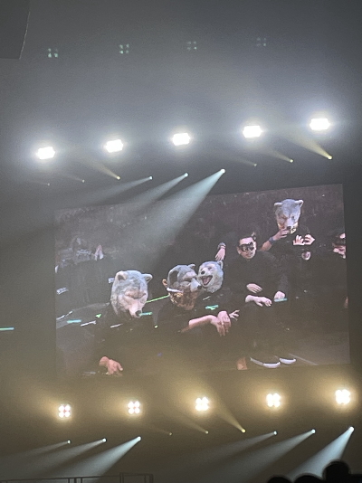 巨大な狼さんたちを模した石造。火も出たりして観客もノリノリだ。コンサート中盤、最高に盛り上がっているところで、近くの通路にスポットが当たると突然狼さんがあらわれた。スタッフや観客の上をダイブしている。びっくり、大興奮だった。最高のライブだった。