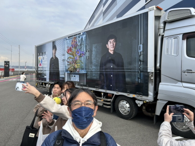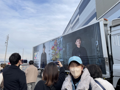 14時頃セントレアに到着。開場1時間30分前にもかかわらず、駅から会場へ向かう人の流れができていて、流れに沿って開場へ向かう。物販コーナーは入ることができたが、沢山の人だかりでどこで購入できるかよくわからず。天気も良かったのでブロック別の整列場所で早々と待機。「推し」のTシャツやバックなど、おそろいのグッズで揃えた人たちがたくさんいて、これはまるでマラソン大会のスタート前のような雰囲気だった。