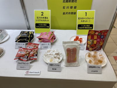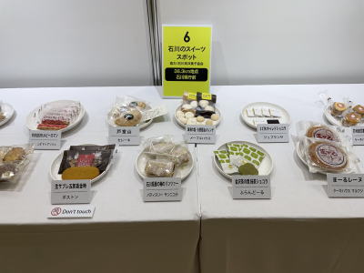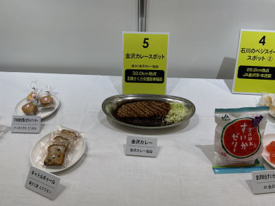 荷ほどきした後、イベント会場のもてなしドームへ。マラソンコースのたべまっしステーションで出される給食が展示されていました。