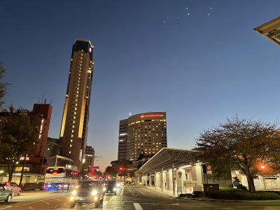 三日月がきれいな金沢の夜空を見上げながらホテルへ。早めの就寝。