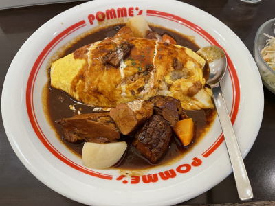 夕食は駅近くのイオンみたいな建物のレストランでオムライス。旅行支援ーポン3000円分をさっそく使わせていただきました。