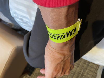 すでに道路は渋滞しており、スタート会場まで20分ほどかけて到着。ここからのランナー区画へはリストバンド、ゼッケンのチェックがないと入れないので、かーちゃんとはここでお別れ。