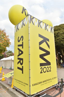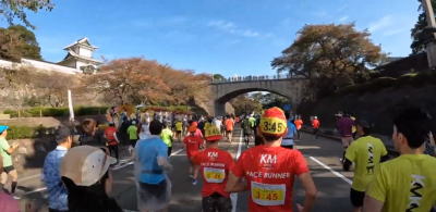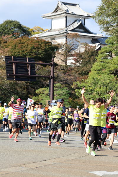 スタートしてすぐに兼六前を左に折れ、金沢城公園石川門へ。太鼓での盛大な応援、金沢着物美人の笑顔に背中を押され、緩やかな下り坂を気持ちよく走り抜けた。