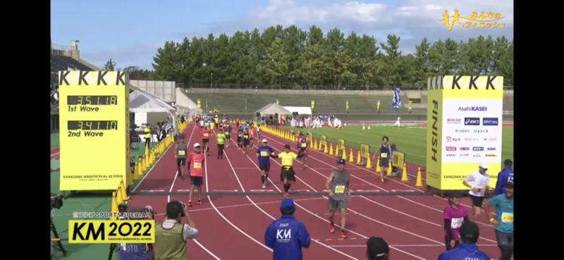 YouTubeの【金沢マラソン2022】みんなのフィニッシュ 動画の1:38:28あたりからゴールシーンが映っていました。