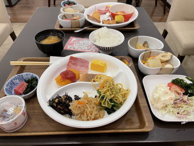 翌朝は4時40分起床。朝食が5時からと聞いていたのだが、実際は5時30分だったらしく、ここでも15分ほど立ちっぱなしで待たされる。私たちの他にも10名以上の方が待たされました。旅行支援対応で忙しすぎるとはいえ、ひどすぎるホテル側の失態でした。