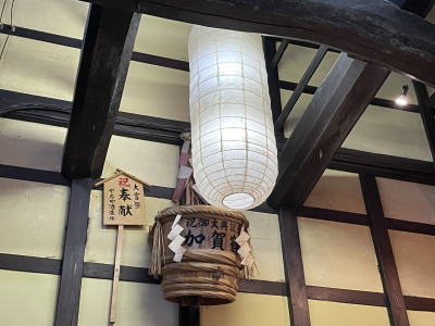まずは金箔の老舗へ。女将さんの説明はあまり入ってこなかったが、金箔の間はとても輝いていました。酒蔵巡りではなにより試飲が楽しみ。3種類のお酒が用意され、それぞれ2~3杯くらい頂くことができました。来年の正月用にとお酒2本購入しました。