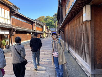 浴衣や着物に着替えたカップルや外国人もたくさん。その周りだけ街並みに溶け込んでタイムスリップしたようです。1時間ほど散策した後は兼六園へ向かい昼食。上品な懐石料理をいただくことができました。