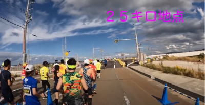 ここには応援バスで移動しているかーちゃんがいるはず。10キロ地点と違い、ここはランナーも、沿道の応援も、ばらけてるので見つけられるだろうと思いかーちゃんを探しながら走る。