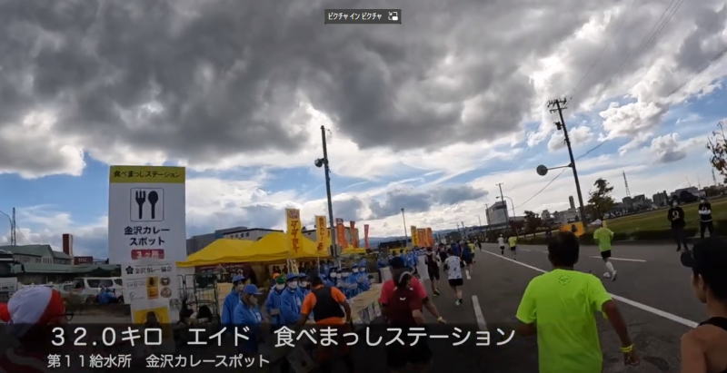 32キロ地点にある金沢カレーの食べまっしステーションもスルー。後になって思えば、途中にジェルを1袋しかとっていなかったので、ここでは少しでも口に入れておけばよかった。わずかな時間を惜しんで最後のエネルギー切れを起こしてしまったようだ。