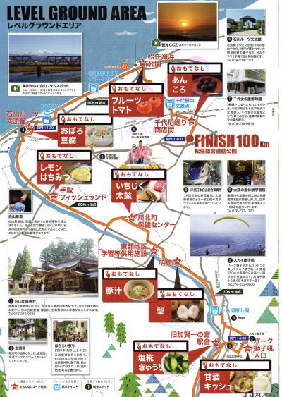77キロの川北町保健センターに到着。エイドであんこの入ったいちじく太鼓をいただく。後半とっていなかったショッツも投入。少し走れるようになるが、ここからは手取川沿いの堤防。