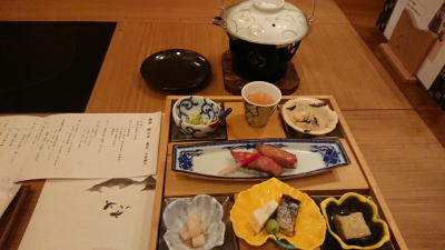 夕食は懐石料理となっており飛騨牛の野菜鍋など堪能しました。