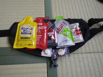 エネルギージェルショッツはここまで3袋、塩飴なども4個とった。