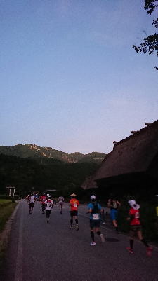 まずは日の出前の幻想的な白川郷を気持ちいいペースで走り抜ける。5キロくらいから白山白川郷スカイラインの入り口を通過しいよいよ山越え。なんとか7:30くらいのペースで走り続け、最高到達点1445mには2時間5分くらいで到着。