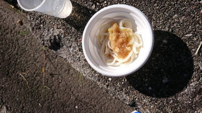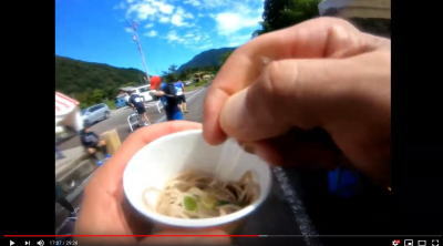 別の方のYouTubeにも第2関門で座り込んでおそばを食べている様子が…。お二方とも12時間前後でゴールされているので、前半の飛ばしすぎと後半の落ち込みの大きさがわかります。