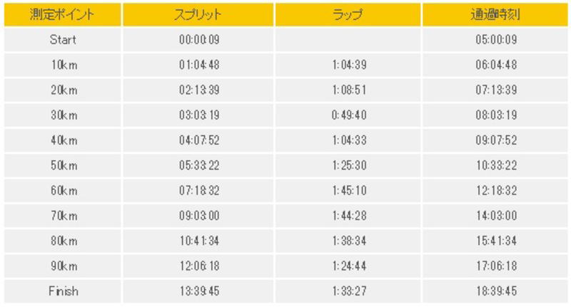 私のあとも制限時間までの20分の間に100人くらいの方が走り切り、100キロ完走は431名、完走率39%。50キロ以上走った方で、それぞれのポイントで私より速く到着してるもののリタイアした方は男子54名、女子3名もいました。力のある方も苦戦する、とてつもなく過酷なレースでした。
