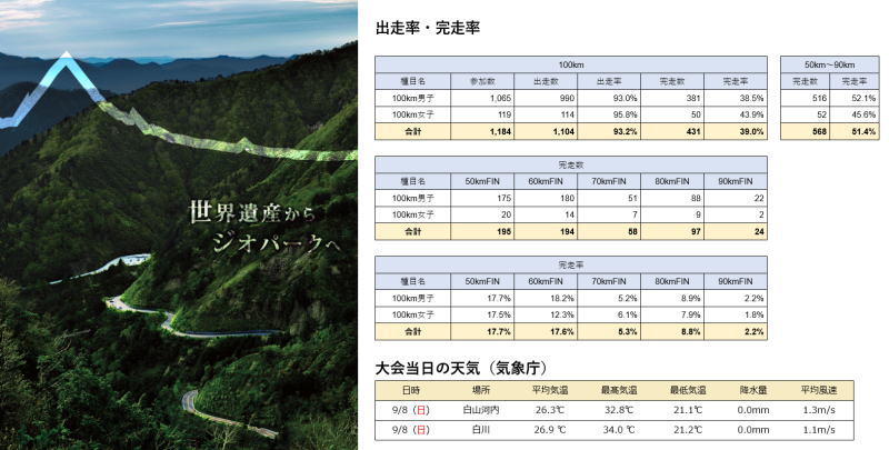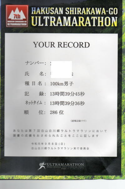 9月8日、第7回白山白川郷100キロウルトラマラソン 無事完走しました。6回目となる100キロウルトラマラソン。気温35度の過去最高の過酷な条件にリタイア寸前まで追い込まれましたが、大会スタッフ、エイドボランテイアの皆様や沿道の声援を力に完走することができました。