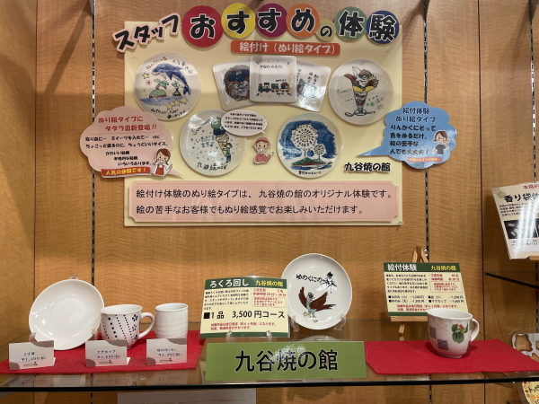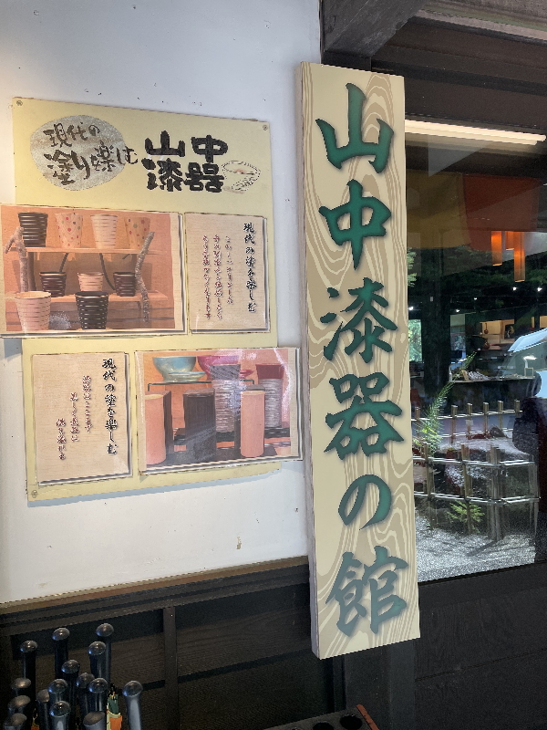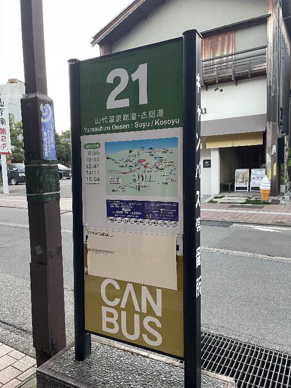 界加賀をチェックアウトし、総湯のお土産売り場で温泉卵を購入。キャンバスバス停前には九谷焼絵付け体験をやっているお店やスイーツの店が繁盛していた。