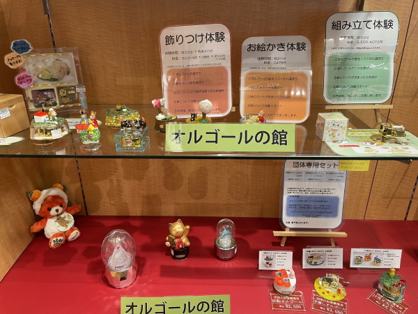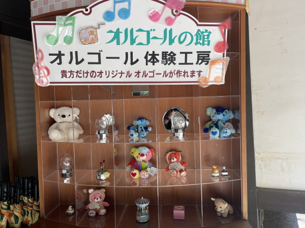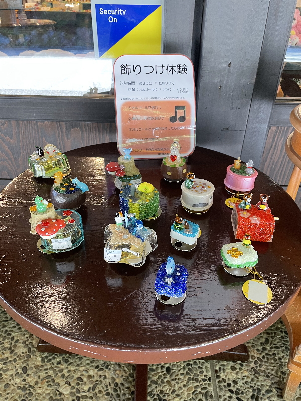 オルゴールの館。素敵な曲のオルゴールが沢山。可愛い飾りつけをして、オリジナルのオルゴールを作ります。展示されているものは素敵な作品ばかり。猫の可愛いパーツもあって、思わず作りたくなってしまいます。