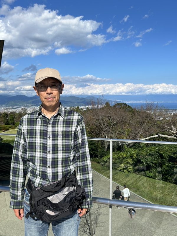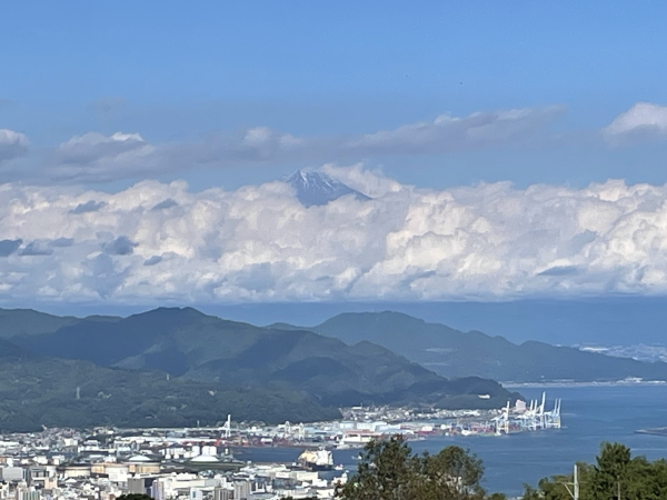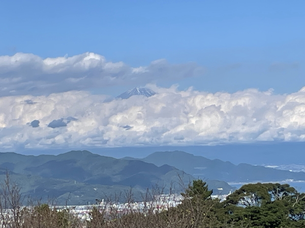 展望回廊にでると遠く雲の上に雪をかぶった富士山山頂が望めた。