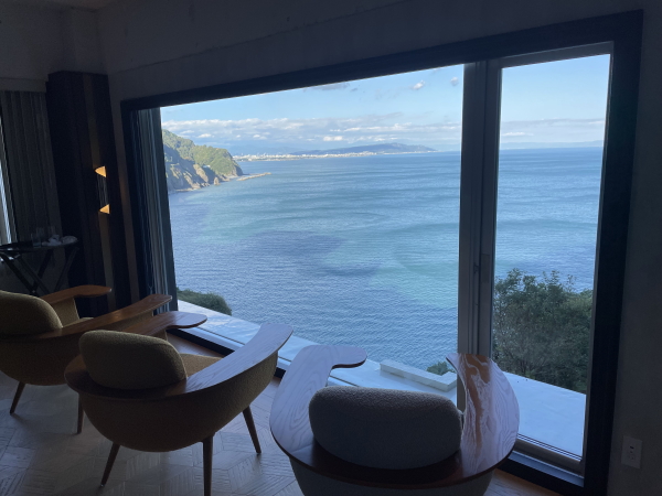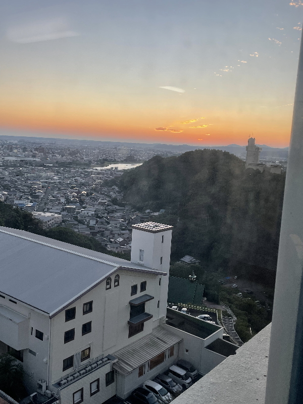 夕食前、南館1階の海のお風呂でさっぱり。その後東館RFのサンセットルームで夕日を鑑賞。