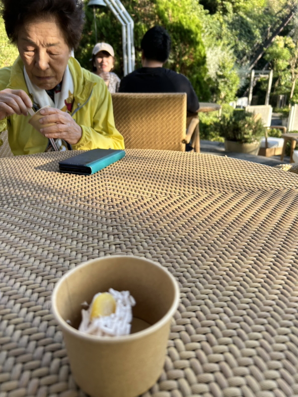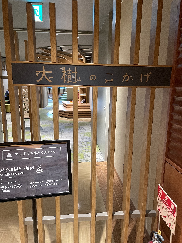 富士ビューラウンジのある南館から西館夕映えテラスを通り、さらに森のエレベーターでB2階。そこからスロープカーで「やいづの森」、「森のテラス&カフェ」へ。