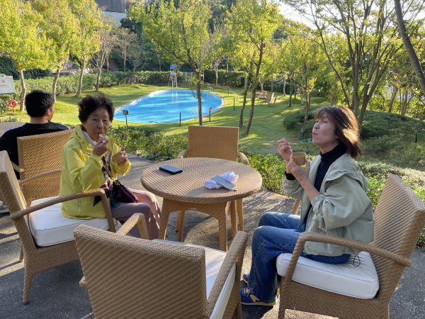 お腹いっぱいで9時にチェックアウト。猫のみーちゃんが心配で早めの帰路です。