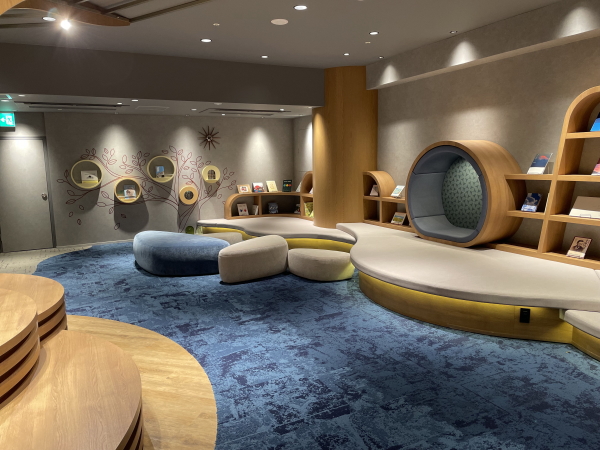 西館B1にある「大樹のこかげ」。ライブラリーエリアやボードゲームエリアがありました。