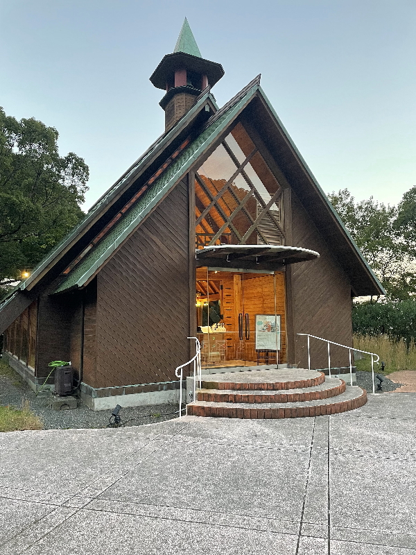 森のコテージ。6時30分からはヨガが実演されます。まだ時間前でした。