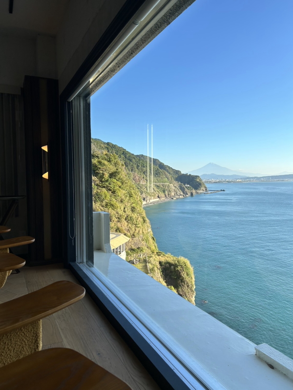 朝食前に富士ビューラウンジへ。誰もいなくて富士山を独り占め。1週間ぶりに雲一つない富士山が拝めたとのことでした。ラッキー!