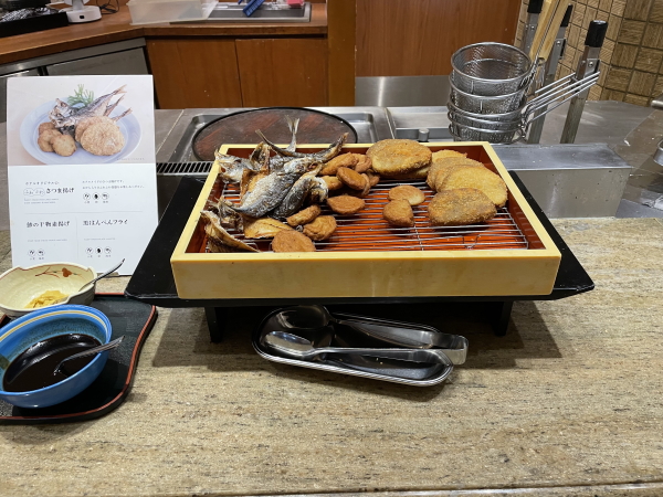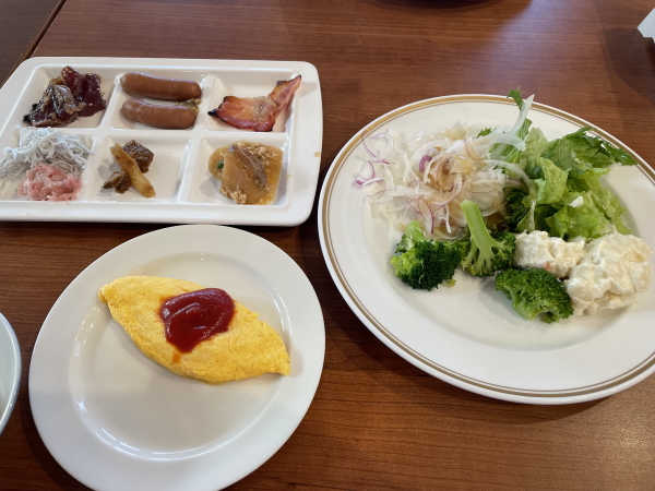 朝食バイキング。ライブキッチンでのオムレツ。黒はんぺんも美味しかったです。