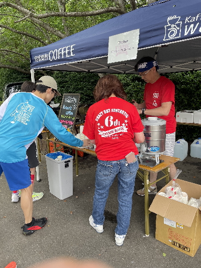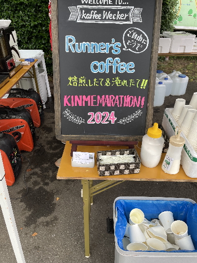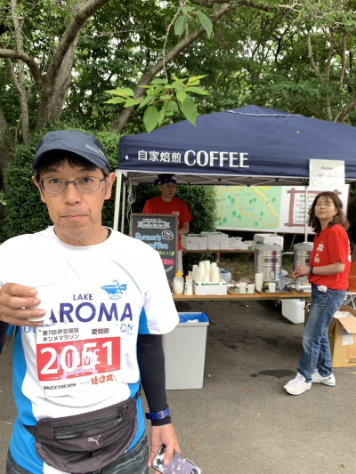 スタート前エイドでは、すでにコーヒーやオレンジジュース、パンやくるみのクッキー、ドライフルーツなどが支給されていました。コーヒーとてもおいしかったです。