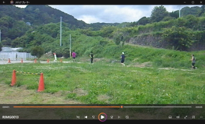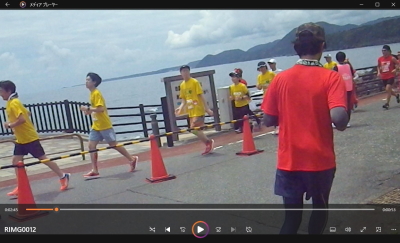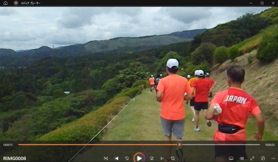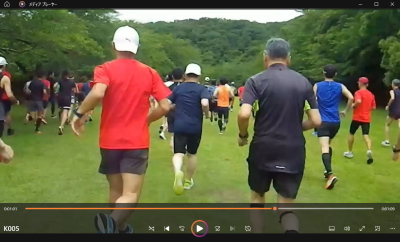 10時スタート。まずはクロカンコースを芝生や足元の小枝に注意しながら周りとペースを合わせて、途中、左側に海を臨む景観よき場所も通り3キロほど走る。