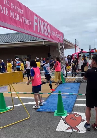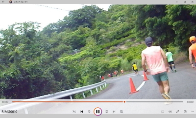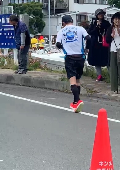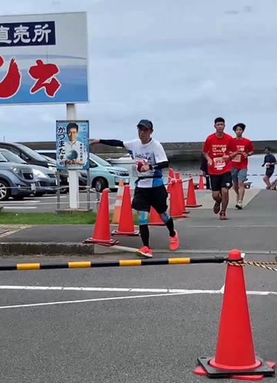 その後は舗装道路にでて5キロすぎるとトマトエイドを過ぎここからキンメマラソン本番の坂だ。げんなりするほどの坂が続く。げんなり坂にさしかかったところで先頭のランナーや苦しそうに走るハリーさんたちとすれ違う。野々村さんは結局見つけられなかった。