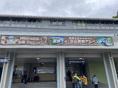 9:55扇沢駅到着。ここから関電トンネル電気バス、黒部ケーブルカー、立山ロープウェイ、立山トンネル電気バス、立山高原バス、立山ケーブルカーと6つの乗り物を乗り継いで富山県立山駅へ抜ける。それぞれの乗り物の出発時間は、その都度ツアー添乗員より知らされるので、おいてかれないよう集合時間を厳守しなければならない。