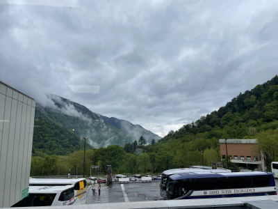 2日目。朝から結構な雨。6:30から朝食。雨が止まない中、7:33にバスで出発。