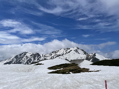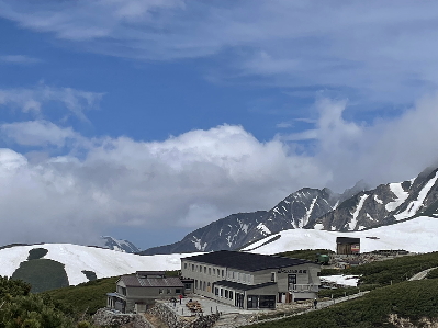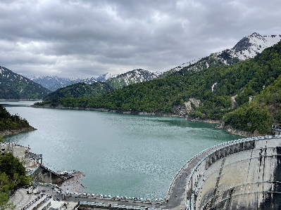 黒部平からは立山ロープウェイで大観望へ。標高2316から黒部ダムを一望。残雪山々の奥に見える黒部湖はとてもきれいでした。