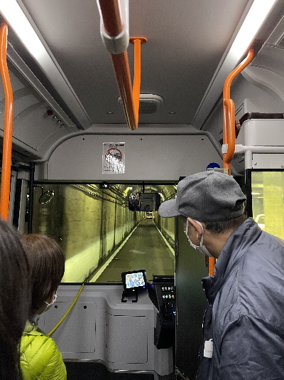 関電トンネル電気バスは、座れないかもと案内されていたが、4台同時運航だったので余裕で座ることができた。16分ほどで黒部ダム到着。
