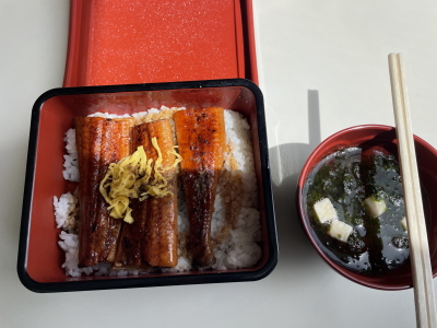 立山レストランに戻ってうな重の昼食。やわらかくておいしかったです。晴れてきたので昼食後も散策。