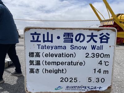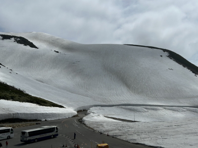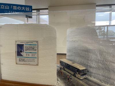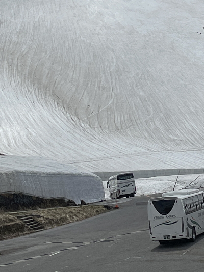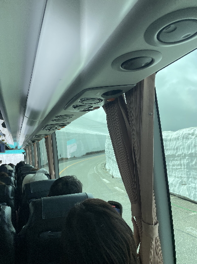 14:50立山高原バスで美女平へ向け出発。バスの中から雪の大谷を見る。右側の座席だったため最高地点は確認できなかったが、スケールの大きさは感じることができた。