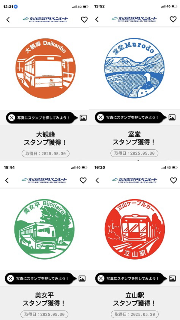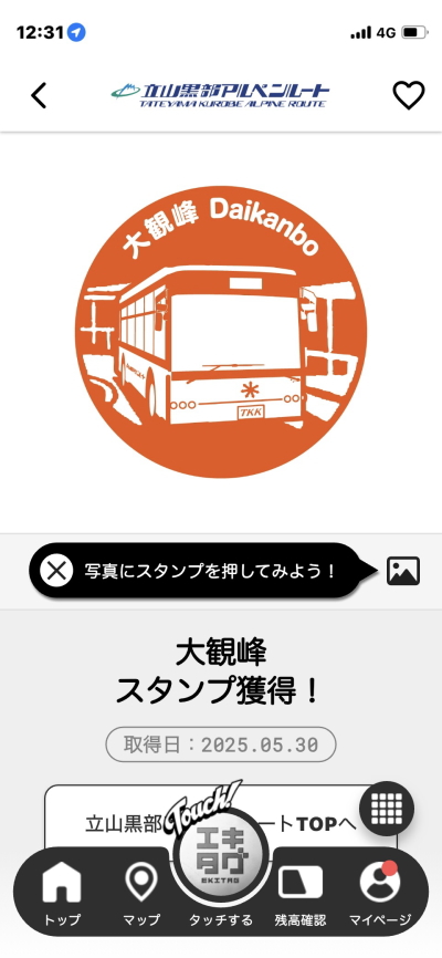 黒部立山アルペンルート完走。スマホアプリのエキタグは4つのスタンプをGET。黒部平と黒部湖はいつかリベンジだ。