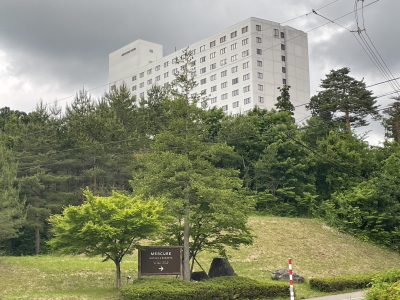 16:40再び濃尾バスに乗り込み、2日目のホテルのある越中となみ野温泉へ向かう。ホテルはメルキュール富山砺波リゾート&スパ。ホームページでは、『2024年リブランドオープンの温泉ホテルに宿泊!北陸グルメや鰤・白海老などを含むビュッフェの夕食。ビールやスパークリングワイン、富山の銘酒などもお楽しみ(約60分)』。